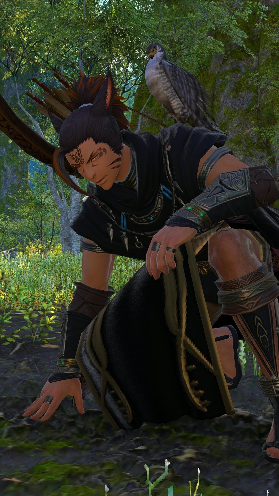 Flanked by the main members of the Tribe were their faithful avian companions, hunting hawks and Draught sized Black Chocobos bred to keep to a time honored tradition of gifting their young hunters when they came of age, so that they may embark on solo Hunts