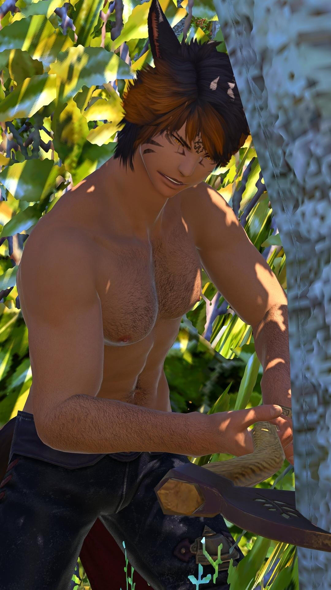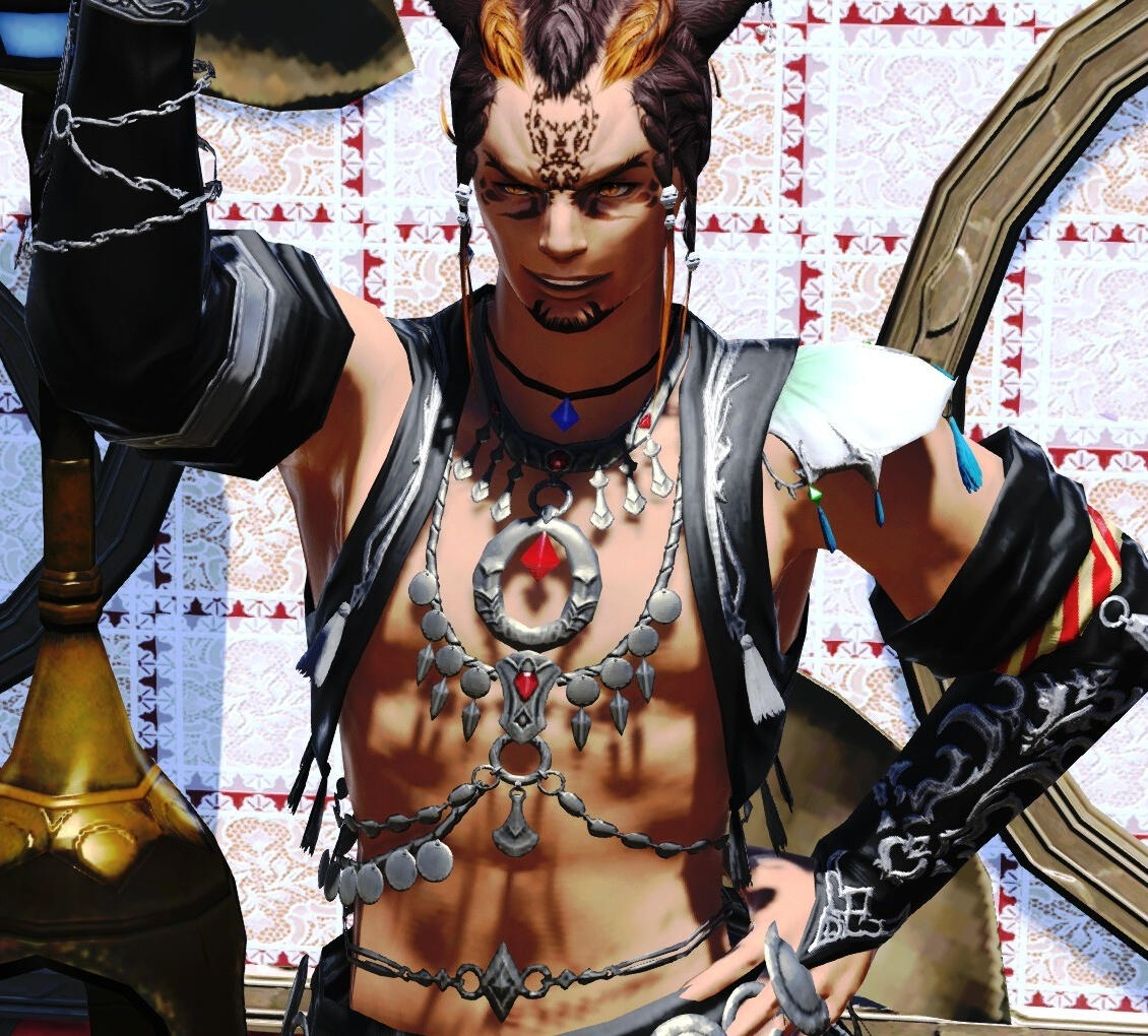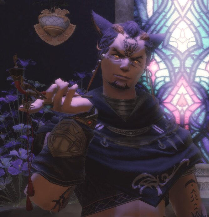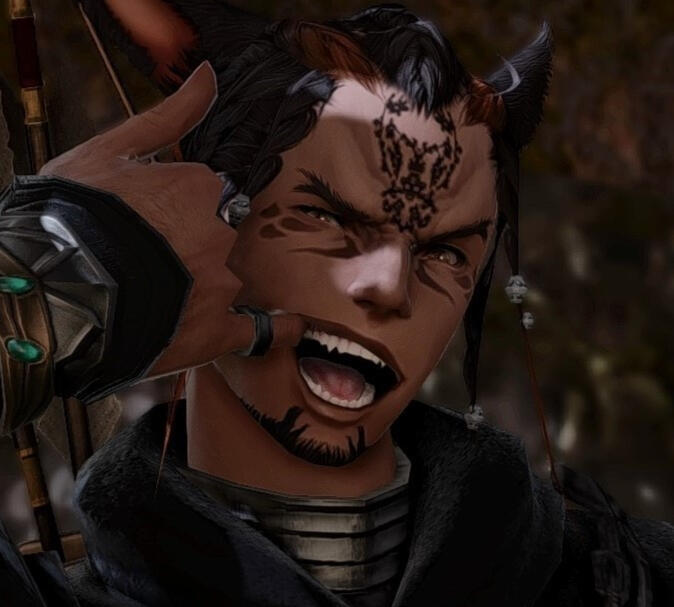Born and raised in the Central Shroud East of Bentbranch, C'tahj was raised by his Seeker Father and 2 Keeper Mothers. In his Tribe, he grew up alongside 8 older brothers and 1 younger sister.With so many older brothers vying for the role of Lead Hunter, competition was rife among them, always testing to see who could slay the biggest game and claim the title.One night, he goes out on his own with the intent on taking down and bringing home the biggest mark by dawn to prove his worth, and only after many failed attempts, heads home dispirited and empty-handed.While making the journey home, he overhears adventurers warning one another to exercise caution when venturing near Naked Rock.He races back to his village, only to find the settlement destroyed. The remnants of a hard-fought battle between his Clan and a Terrible Beast were all that remained.With no family and no home to return to, he adopts the life of a traveling hunter, and treks across Eorzea searching for purpose, connections, and the Beast responsible for the fall of his Tribe.